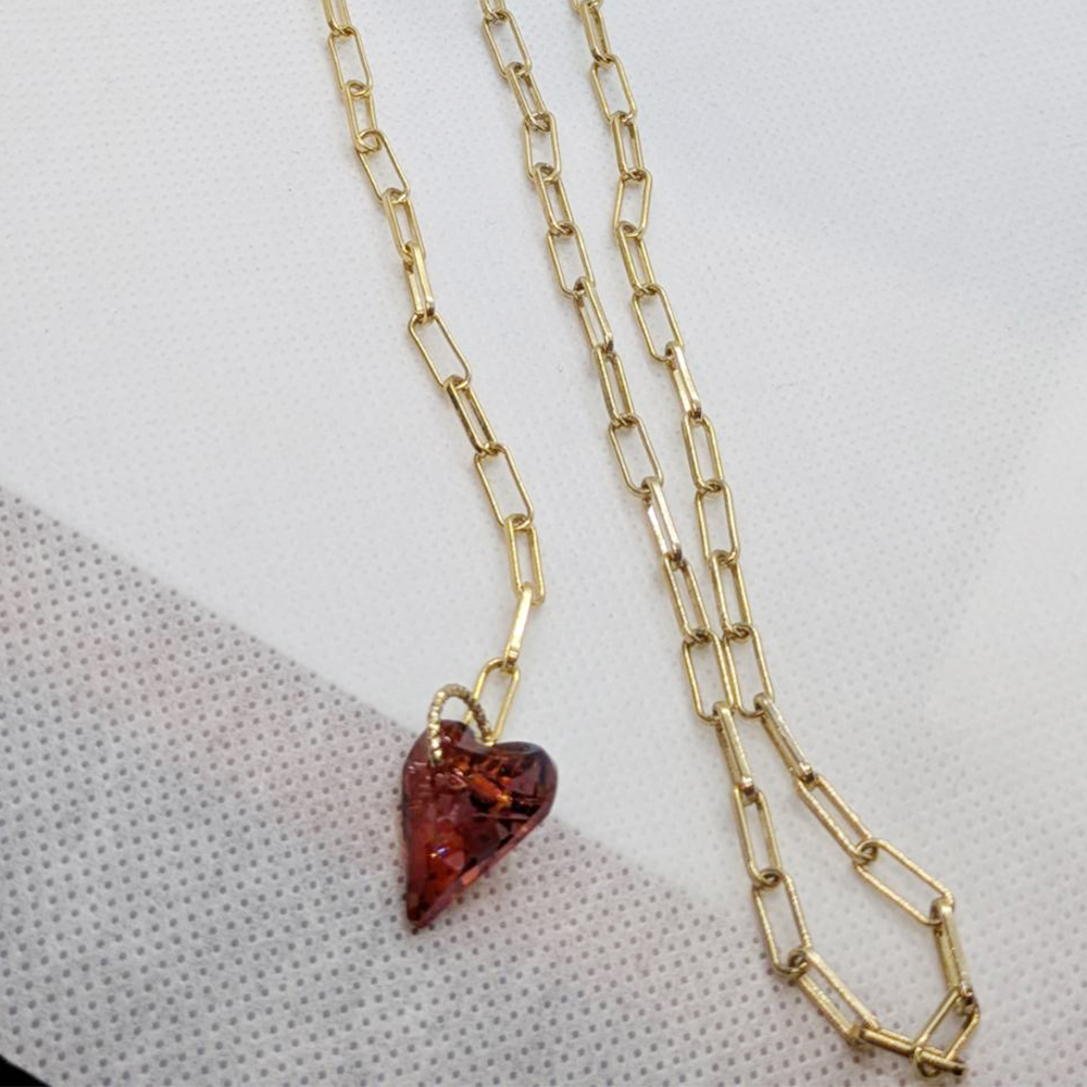 大胆なチェーンをY字に掛ける事が出来るネックレスです。 長さのある穂先には、ハートのスワロフスキーを飾ってあります。